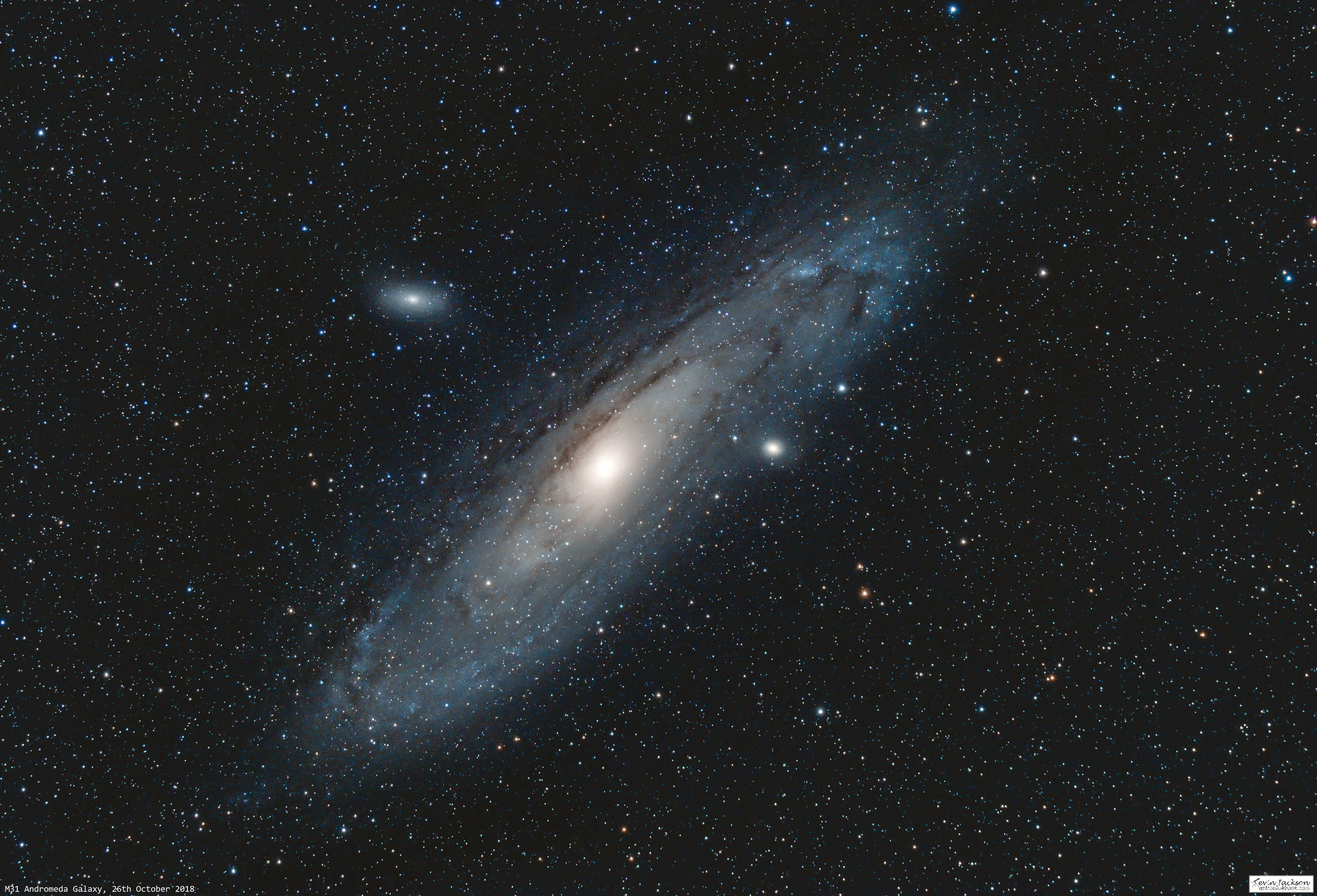 M31 Andromeda galaxy. Scope: TSAPO65Q with NVR-1073 0.8x Reducer. Mount: SkyWatcher EQM-35 Pro. Camera: ZWO ASI294MC Pro. 60×45 Secs. Processed in APP. Finished in Adobe CC. Kevin Jackson