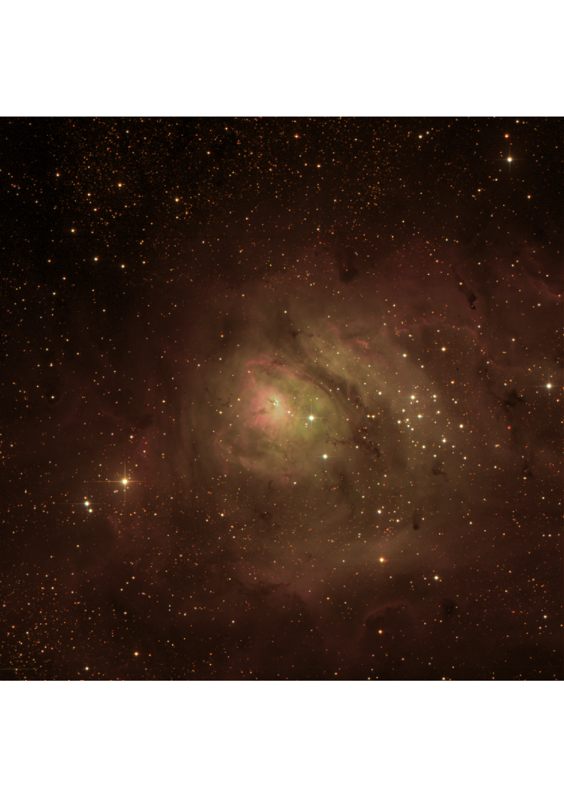 Messier 8 (Lagoon Nebula) is c.5000 light years away in the constellation of Sagittarius